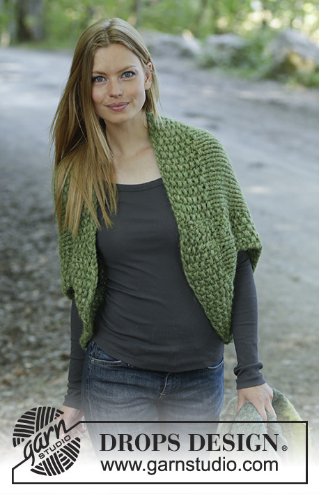 Knitted shoulder piece in 4 threads DROPS Air. The work is knitted from top to bottom with stocking sts and moss stitch. Size S - XXXL.