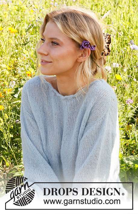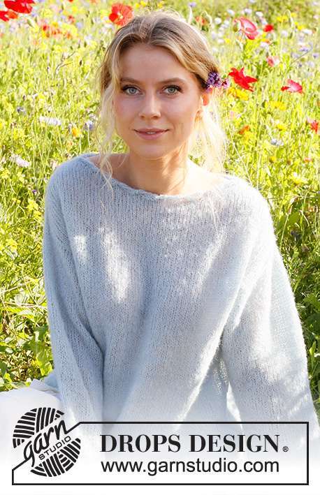 Knitted jumper in DROPS Brushed Alpaca Silk. The piece is worked top down, with increases for shoulders and decorative neck. Sizes S - XXXL.