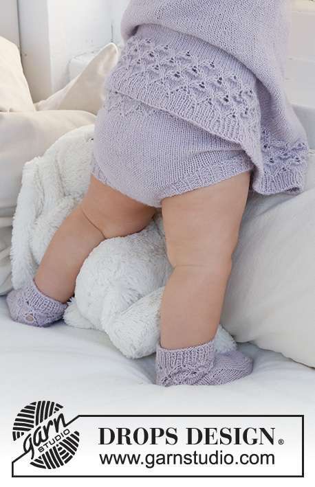 Knitted shorts for baby in DROPS Alpaca. The piece is worked top down, with lace pattern and rib. Sizes 1 month – 2 years.