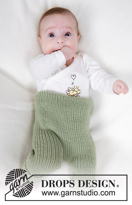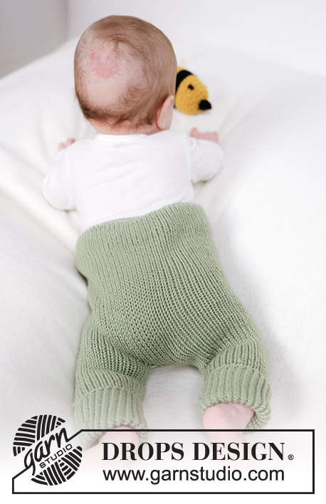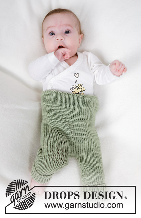 Knitted trousers for babies in DROPS Merino Extra Fine. The piece is worked bottom up, in rib. Sizes 0 - 4 years.