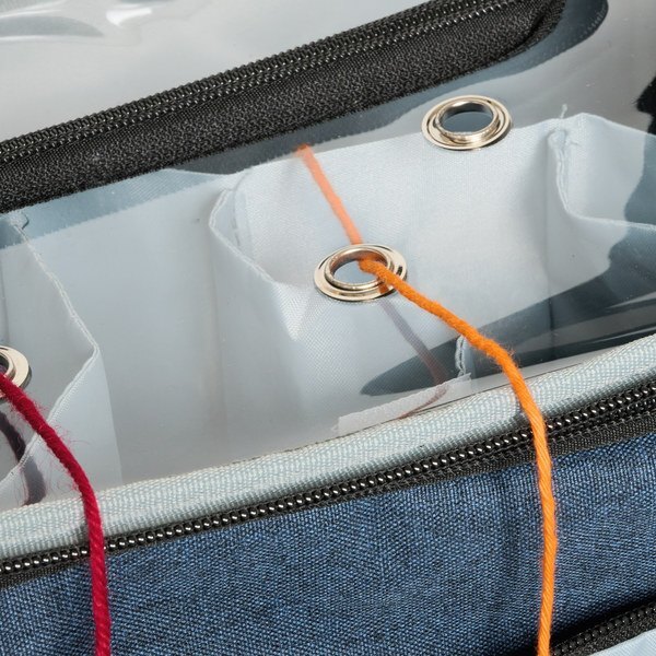 Keep your yarn and supplies organized and stylishly stowed away in this handy denim bag. The large size is perfect for holding all of your essentials and features dedicated pockets and slots to store your crochet hooks, clips, needle thickness measuring scales and more. Not just that, the yarn bag also features yarn holes that allow you to store your skeins and knit conveniently So grab your needles and get ready to hit the open road with this fabulous fibre bag!