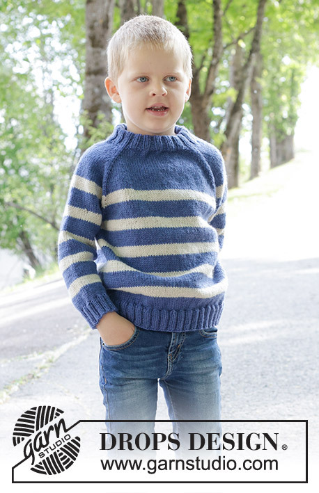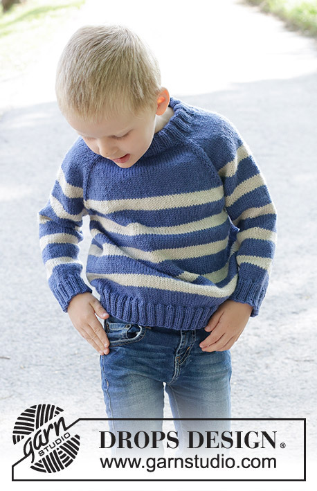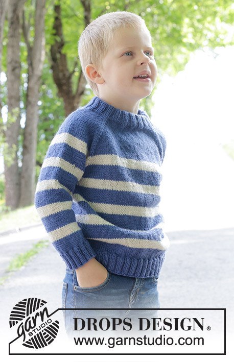 Knitted sweater for children in DROPS Karisma. The piece is worked top down with double neck, stripes and raglan. Sizes 2 – 12 years.