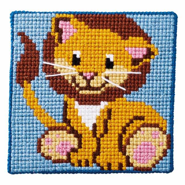 Fine lion embroidery kit with the dimensions 25 x 25 cm.