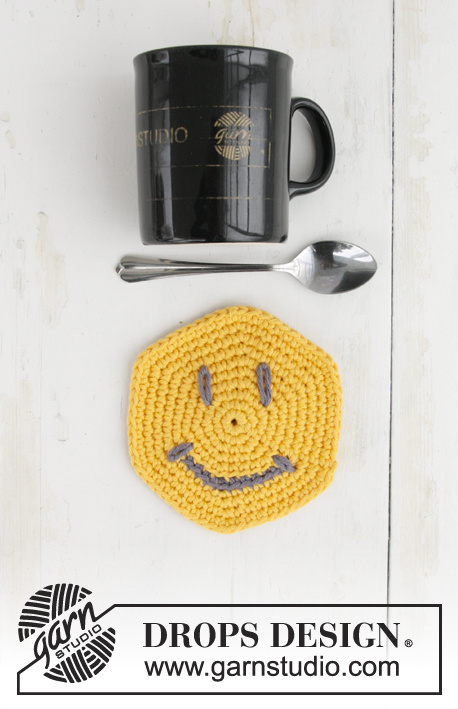 Crochet tablecloth with smiley for Halloween. The work is crocheted in DROPS Paris.