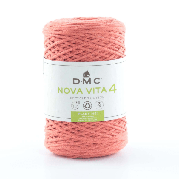 DMC Nova Vita 4 Yarn is the perfect choice for your next knitting or crochet project! DMC Nova Vita 4 Yarn is made from recycled cotton fabric scraps and is available in 12 beautiful colours. This yarn is perfect for Macramé, crochet, and knitting accessories. It's perfect for making home accessories, and the banner included with each ball of yarn contains flower seeds so you can sow your own flower garden!