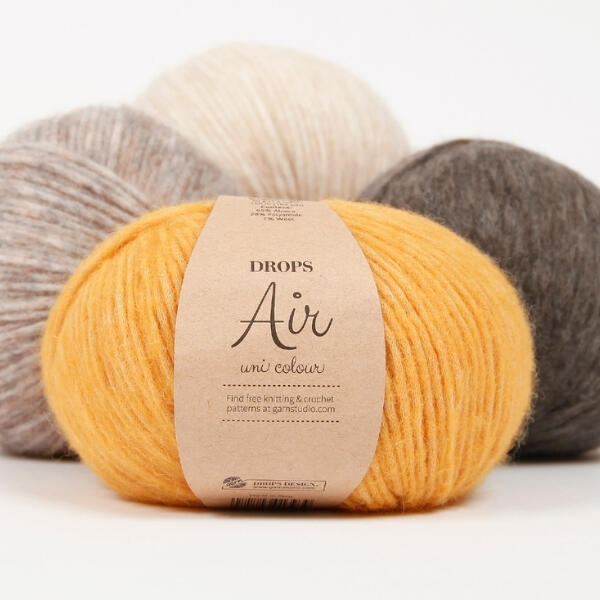 DROPS Air is - as its name says - a very airy yarn that feels beautiful against the skin, which makes it perfect for accessories, shawls, sweaters and jackets in both textured and cable patterns. Garments made in DROPS Air are totally itch-free, which means everyone can wear them!