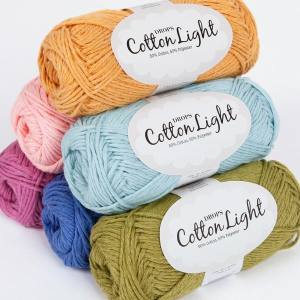 DROPS Cotton Light is a lovely soft yarn made from 50% cotton and 50% polyester micro. The micro fibers are thinner than silk strands and they do not take up moisture. This, combined with cotton, gives both summer and winter garments that breathe, have good shape stability and high durability.
