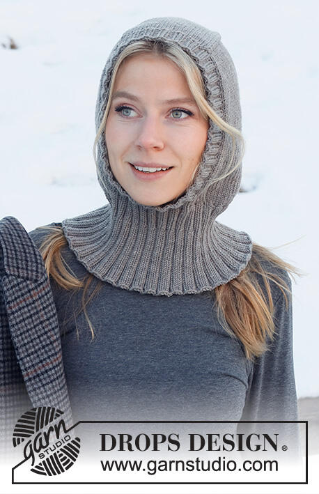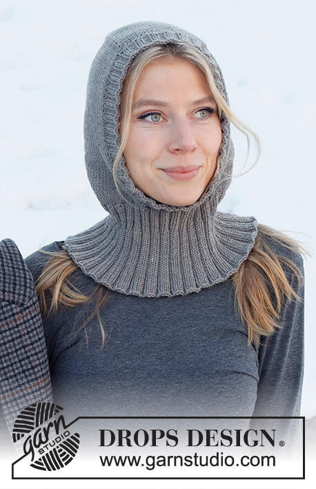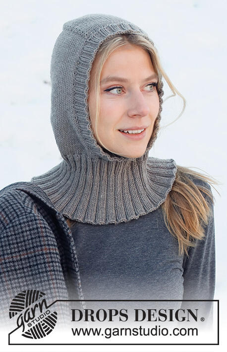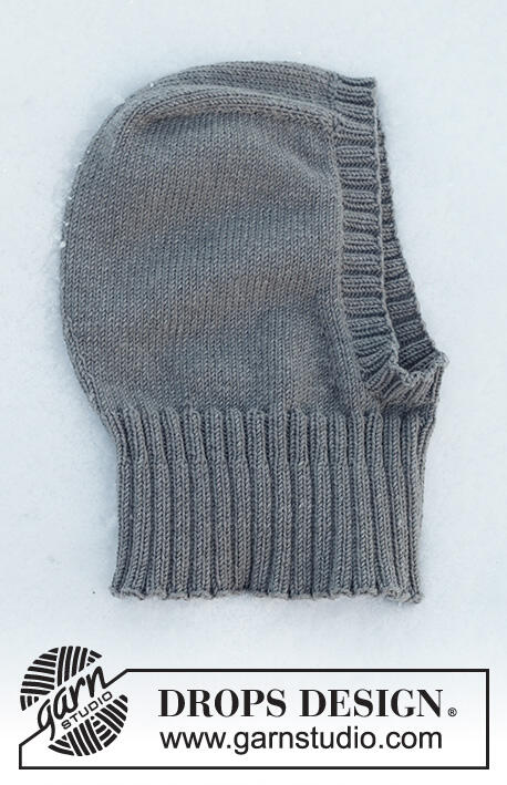 Knitted hat / balaclava in DROPS Merino Extra Fine. The piece is worked top down with stocking stitch and ribbed edging.