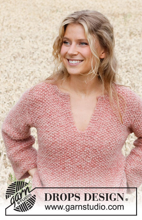Knitted jumper in DROPS Sky and DROPS Brushed Alpaca Silk. Piece is knitted in moss stitch with vent in the neck and vents in the sides. Size: S - XXXL