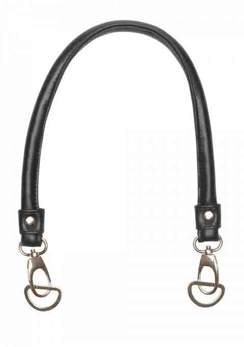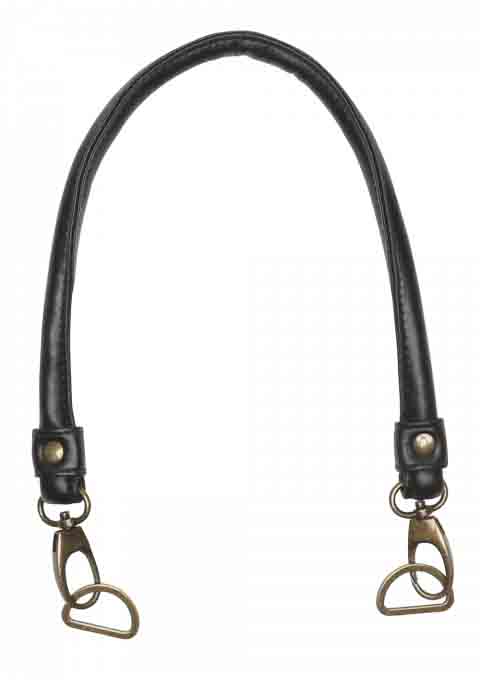 2 handbag handles in black PU leather with lobster lock and D-ring.