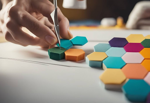 Cut out your paper templates ensuring precision for uniformity in your EPP project. If using pre-cut templates, verify they are all the same size and shape. If reusing templates, they must remain intact and sturdy for subsequent uses.