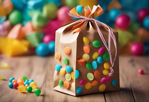 - Open the paper bag and fill it with sweets, confetti, and small toys.