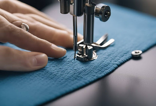 - Position the needle: If our machine allows, we adjust the needle position so that it aligns with the markings on our guide, ensuring accuracy in seam width.