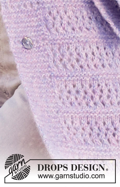 Knitted jacket in DROPS Air. The piece is worked with lace pattern and shawl collar. Sizes S - XXXL.