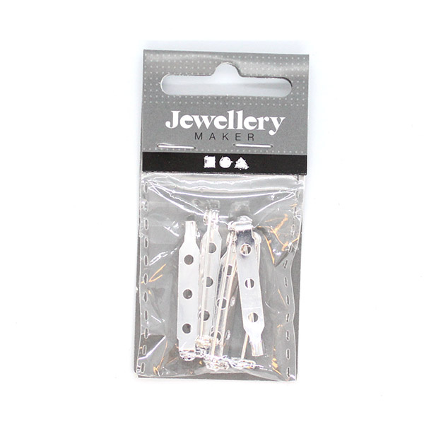Brooch Pin Silver plated 30 mm, 5 pcs
