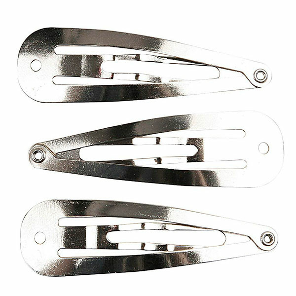 Crafted in metal, these plain hair clips feature holes at the top to let you attach gems, pearls, ribbons, artificial flowers, or any other decorations that you want. The silver-plated finish gives them a smooth, glossy shine, so you can keep the design simple with just a single decorated detail, or you can easily wrap the whole design in ribbon or paint it with resin to give it a colourful new look. The finished product makes a wonderful gift for children and adults alike.