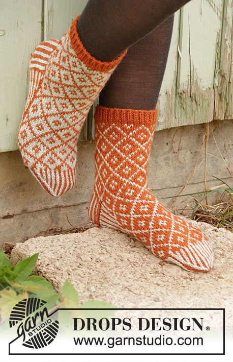 Knitted socks in DROPS Karisma . The work is knitted with a Nordic pattern. Size 35 - 43.