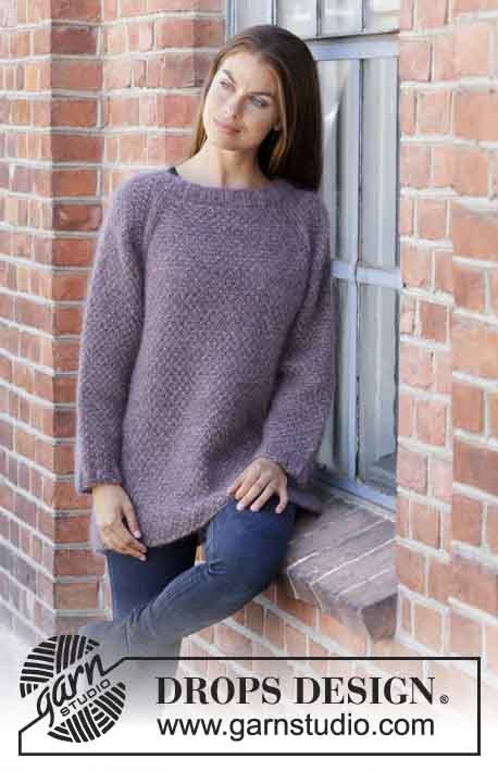 Knitted blouse with raglan in 3 threads DROPS Kid-Silk. The work is knitted from top to bottom with moss stitch. Size S - XXXL.