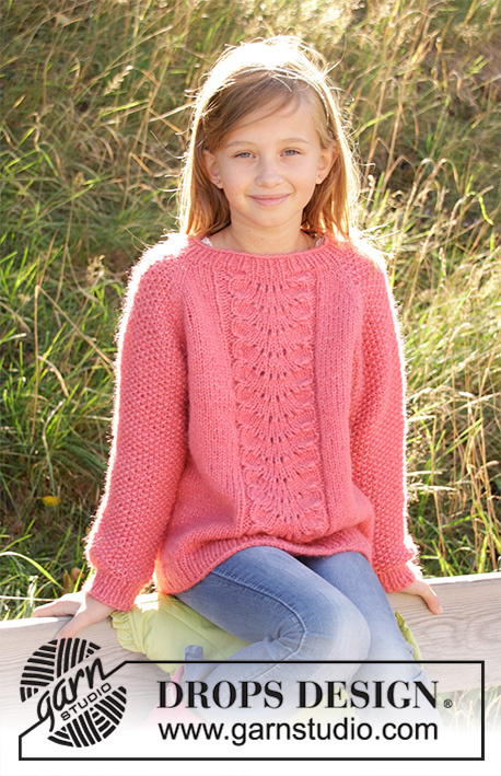 Knitted blouse for children in DROPS Air. The work is knit from the top down with hole pattern and raglan. Size 2-12 years.