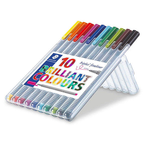 Featuring a super-fine tip, the Staedtler Triplus Fineliner delivers slim, sharp lines with a brush-like softness for effortless sketching and shading. These pens are designed with a unique triangular barrel for an ergonomic grip. With 10 rich colours included in the set, these pens are completely Dry Safe, so the inks won’t dry up even if you accidentally leave them uncapped for days.