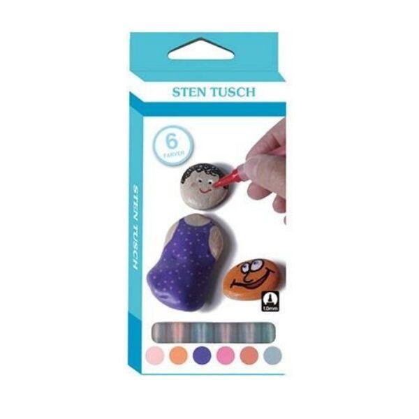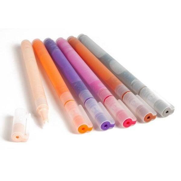 The package contains 6 markers in the colors: Beige, orange, pruple, pink, brown and grey