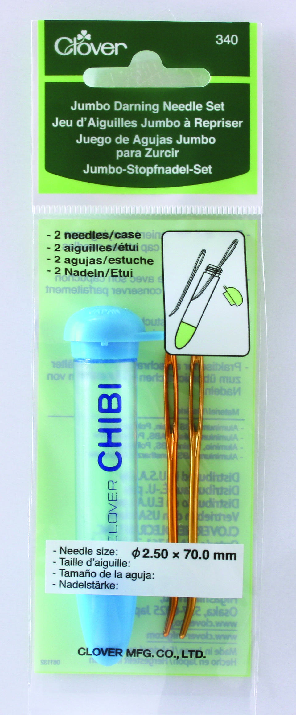 Mending socks with holes in them will be a breeze with the Curved Darning Needles from Clover. These jumbo needles are perfect for when you're working on socks, scarves, or other knitted articles that are made with jumbo yarn. Featuring an extra-large eye with a thick, curved tip, these needles let you seamlessly repair your knitted items, especially thick, handmade ones. They can also be used to attach seams to a sweater or for cross-stitch too. This darning needle set includes 2 jumbo needles with curved tips and come neatly packed in a mini protective case for easy storage. Needle size: 2.5x70mm (2pcs)