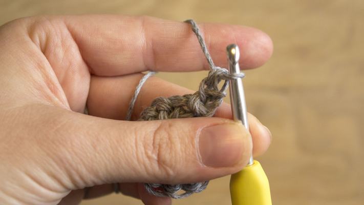 1 sc in the loop from the previous sc (see video), v