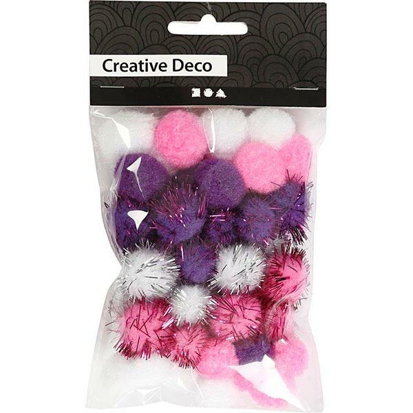 Vibrant, fluffy, and a whole lot of fun! When you’re trying to add a cute, cheerful update to any handmade clothing, accessory, decorations, or handicrafts, our Mini Pompoms are the way to go. This set of multicoloured mini pompoms include 48 pieces of 15 and 20 mm diameter and also includes sparkly pom-poms for a truly special, festive accent to your creations. Available in assorted colours and coordinated colours, these fuzzy balls of yarn complement a wide range of colour palettes.