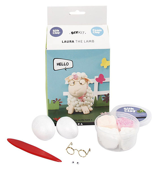 Contents: 2 different colours of Silk Clay, 1 colour of Foam Clay glitter and two sizes of eggs, eyes and glasses.