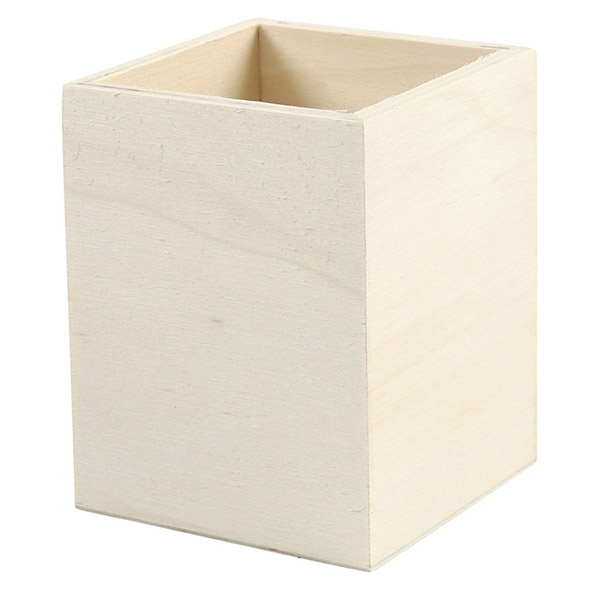 Keep your desk looking sleek and stylish with this Pencil Holder. This natural wood container has a classic design that can easily be matched to any style of office or home décor, while keeping pens, pencils, paintbrushes and art supplies organized. The simple wood can be decorated with everything from beads to paint or stickers so you can put your own personal touch on the container. The container has a simple yet elegant rectangular design with a light wooden finish, allowing it to blend well with any type of office décor and can even be decorated with anything from eyelets to beads. Made from emperor wood, this durable container measures 9.5 x 7.5 cm. and is the perfect size for storing items at your desk or other designated space without being too obtrusive or taking up too much space.