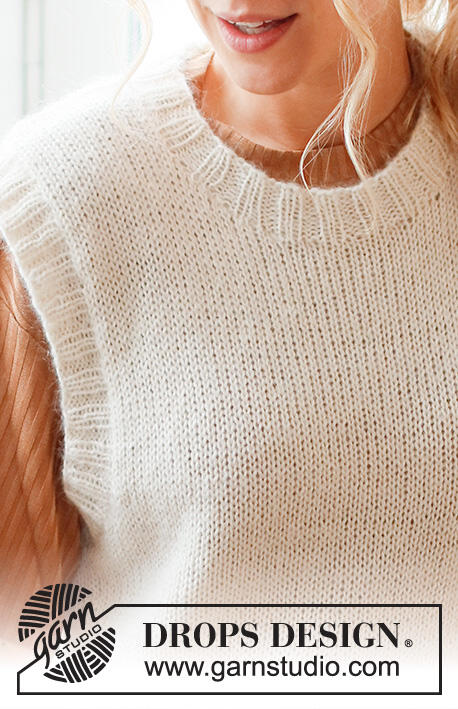 Knitted vest in DROPS Alpaca and DROPS Kid-Silk. The piece is worked in stocking stitch with ribbed edges and split in the sides. Sizes S - XXXL.