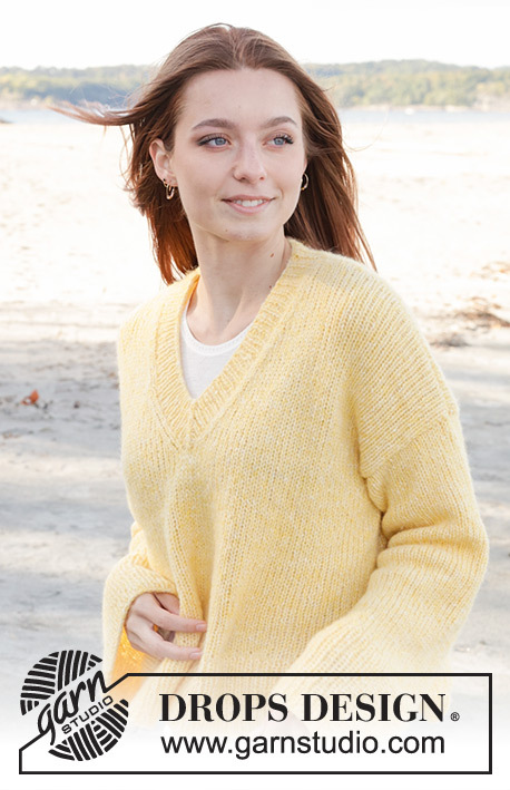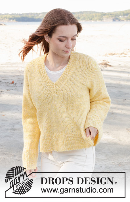 Knitted sweater in DROPS Air. The piece is worked bottom up with V-neck. Sizes S - XXXL.