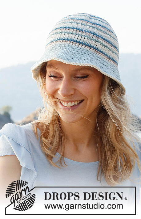 Crocheted hat in DROPS Paris. The piece is worked in the round, top down and with stripes. Sizes S-XL.