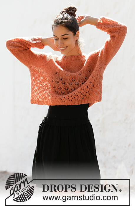 Knitted jumper with raglan in DROPS Brushed Alpaca Silk. Piece is knitted with lace pattern. Size XS–XXL.