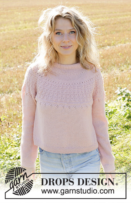Knitted sweater in DROPS Alpaca or DROPS Nord. The piece is worked top down with double neck, round yoke and relief-pattern. Sizes S - XXXL.