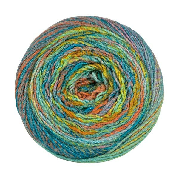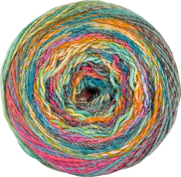 One bullet skein is enough for a full shawl or poncho and the beautiful printed colours gives a wonderful effect - without needing to change to another skein a single time.