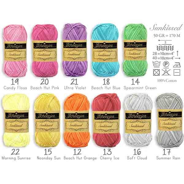 Scheepjes Sunkissed is a lightweight natural yarn that lets the sun’s bright energy shine through your outfit. It’s made of 100% cotton and perfect for creating outfits for summer evenings, hiking & biking in hot weather, as well as comfortable daily wear. The 22 unique colours are both vibrant and natural-looking—pick your favourites or experiment with them all. Remember, there's no such thing as too much colour this summer.
